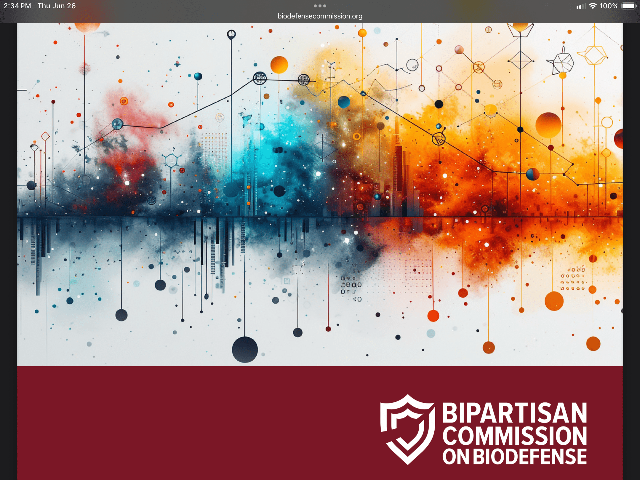 Immediate Action Needed To Defend Against Biological Threats Report On The Bipartisan Commission On Biodefence April 2024 https://biodefensecommission.org/wp-content/uploads/2024/05/National-Blueprint-for-Biodefense-2024_final_digital.pdf